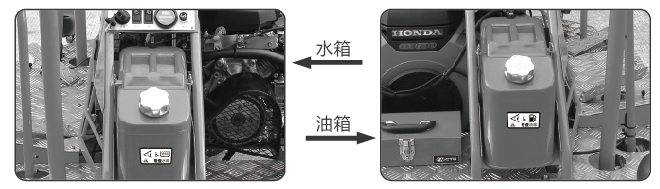 ①開始使用前請仔細閱讀機器說明書,將燃料和水加滿。注意:水箱和油箱做好區分,水箱上有(檢查水箱)字,油箱上有(檢查油箱)字。如果加錯了,會給引擎帶來致命的損壞。