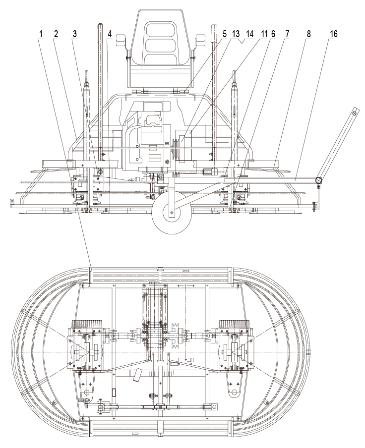 - 此機器是一臺駕駛型的抹平機,采用杰出的系列化設計,卓越的生產工藝;進口軸承和進口傳動系統;有散熱功能,高品質渦輪的加大變速箱可有效保證使用壽命;腳踏式安全開關,松開腳步即可停機熄火;離心式摩擦離合器,經久耐用;配備有搬運輪,方便移動設備。
