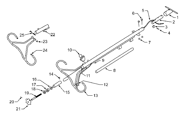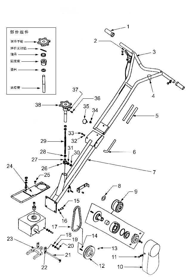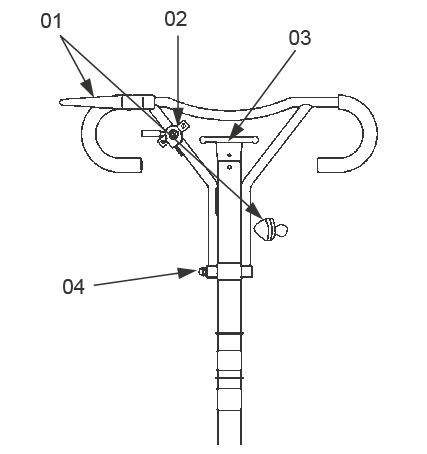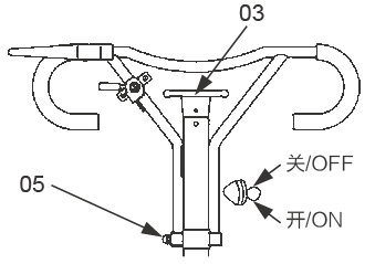 手柄上有個可調節手柄高低的螺栓,松開螺母(下圖05位)然后根據操作者適合的高度向上或者向下調節,最后旋緊旋鈕加以固定。